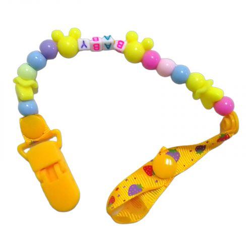 Кліпса зі шнурочком для пустушки це корисний аксесуар. Його зручність полягає в тому, що соска вашого малюка завжди буде поруч, адже кліпса кріпиться до його одягу і не приносить дискомфорту. Прикрашена милими намистинами-фігурками, виконана в дуже милому дизайні, що привертає увагу. Довжина – 27 см.